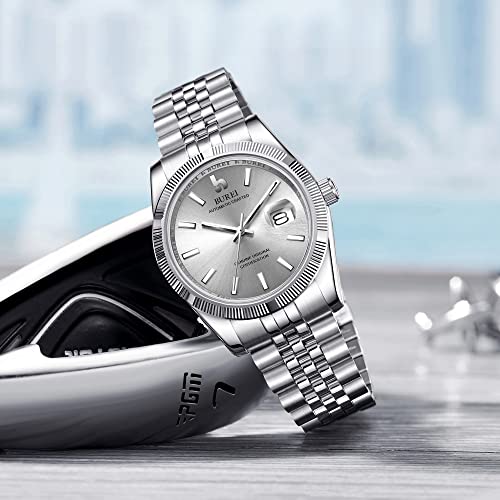 BUREI heren automatische horloges 24 wijzerplaat analoog datumvenster Datum saffierkristallen lens met roestvrijstalen…