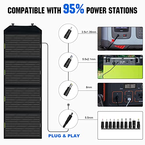 10 DC-adapters: het zonnepaneel wordt geleverd met een DC-connectorkabel en 8 adapters met verschillende specificaties. Het is compatibel met de meeste generatoren op de markt. Zorg voor groene energie voor uw camping.