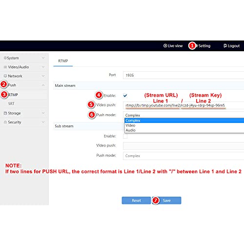Meerdere uitzendingen – Niet alleen geschikt voor het trekken van stream naar uw eigen server via TS (H.265/H.264) zoals IPTV, maar ook voor het pushen van stream via RTMP (alleen (H.264) naar Wowza Streaming Engine, YouTube, Twitch, Ustream, Facebook Livestream, Wirecast, vMix etc. uitzenden. Het ondersteunt ook stream pushing via dubbele adressen.