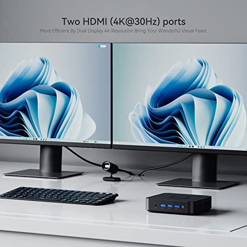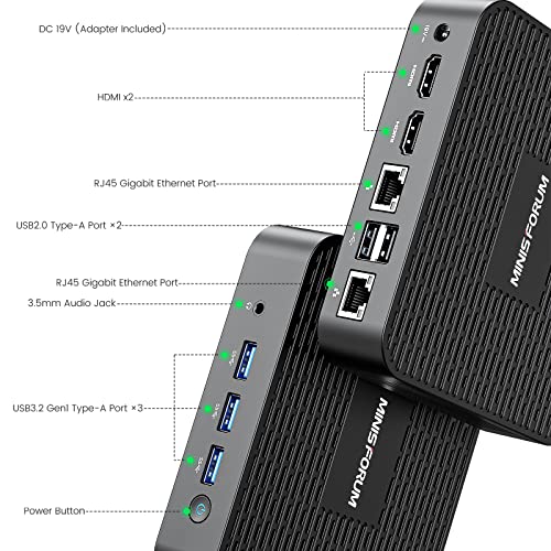 【Multi-Connection Support】Preïnstalleerd met Windows 10 Pro en ondersteuning van Linux en Ubuntu, met 2 x HDMI-poorten, 3 x USB 3.2-poorten, 2 x USB 2.0-poorten, 2 x RJ45 LAN-poort, 1 x 3,5 mm comboJack. MT4UB1 ondersteunt 2.4G+ 5.8G dual band Wi-Fi.