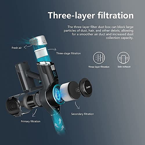 【Hoogwaardig filtersysteem】: de accustofzuiger beschikt over een 3-laags precisiefiltersysteem, de deeltjes worden door de centrifugaalkracht van de hogesnelheidscycloon afgescheiden, waardoor een fijnstoffiltratie van maximaal 99,99% wordt bereikt. Het HEPA-filter is uitwasbaar en zorgt voor schone lucht en een gezellige omgeving voor je gezin.