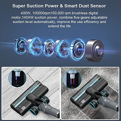 Hoge snelheid motor en sterke zuigkracht: de Redkey F10 draadloze stofzuiger beschikt over een ingebouwde borstelloze hogesnelheidsmotor met 400 W, die een sterke zuigkracht van maximaal 23.000 Pa levert. Met intelligente stofherkenning, afhankelijk van de hoeveelheid stof wordt het zuigvermogen automatisch aangepast. Vijf niveaus kunnen 2 niveaus meer worden ingesteld dan bij normale stofzuigers, wat de efficiëntie verbetert en de levensduur van de accustofzuiger verlengt.