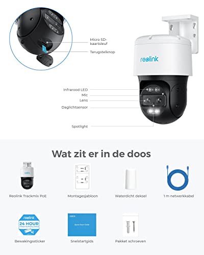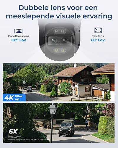 Specification: Reolink 4K Dual-Lens PTZ PoE camera 6X hybride zoom, 355° pan 90° tilt, nachtzicht in kleur, detectie van personen…