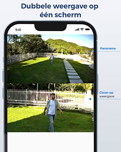 Dubbele weergave op één scherm: Zie precies wat er gebeurt rondom uw huis met dubbel zicht op één scherm. De 8mm telelens legt close-up details vast, terwijl de 2.8mm groothoeklens een panoramisch beeld geeft.