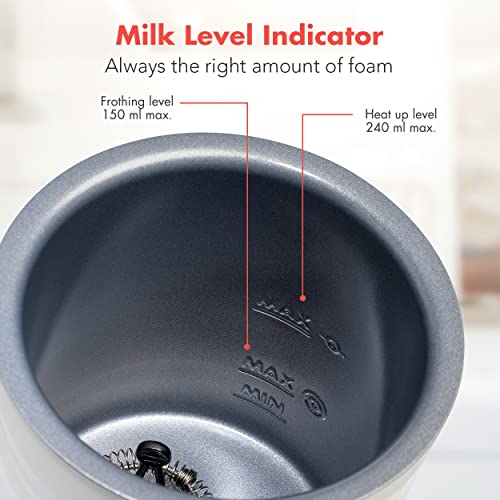 ✅ GENIET VAN DE LEKKERSTE KOFFIE: Deze automatische melkschuimer maakt heerlijk romig melkschuim voor je cappuccino, latte macchiato, ijskoffie of warme chocolademelk. Maak nu ook thuis met gemak de lekkerste koffie. Verwarm tot 240ml, of schuim tot 150ml per keer op. Stil en binnen 2 minuten!