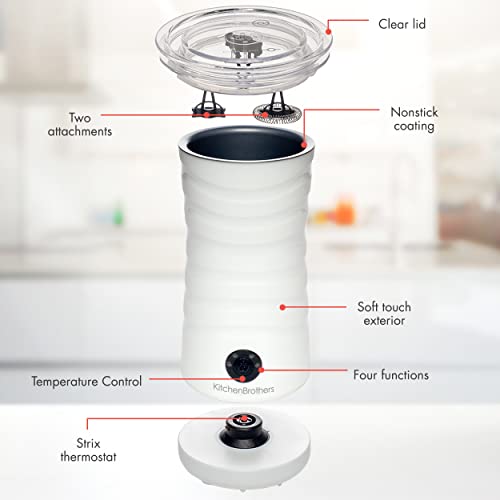 KitchenBrothers 4-in-1 Melkopschuimer – Melkopschuimer Electrisch – Dik & Warm, Dun & Warm en Koud Opschuimen, Melk…
