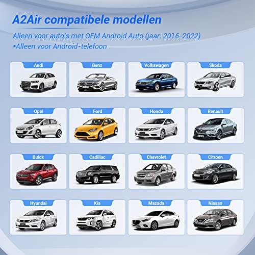 【Compatibiliteit】: Deze Android-autoadapter is alleen beschikbaar voor Android-telefoons (Android 11 en hoger) en bekabelde Android-auto’s in de fabriek (bouwjaar: 2016-2022). Zolang aan deze twee vereisten wordt voldaan, zijn de meeste modellen compatibel. Als u niet zeker weet of uw auto in aanmerking komt, neem dan contact met ons op.