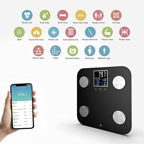 WottoCare BMI digitale weegschaal BMI analyse 18 metingen gewicht, lichaamsvet, spieren,… Professionele Bluetooth…