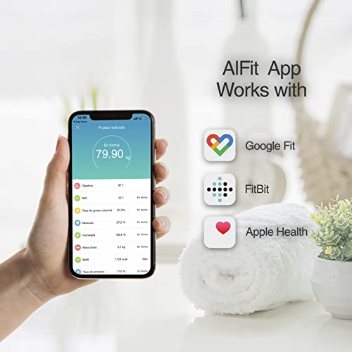 Specification: WottoCare BMI digitale weegschaal BMI analyse 18 metingen gewicht, lichaamsvet, spieren,… Professionele Bluetooth…
