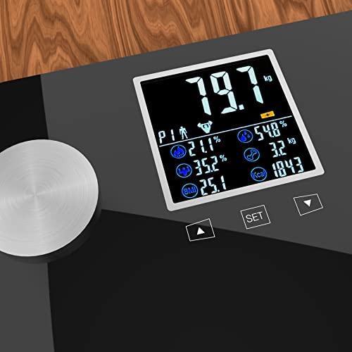 Controle je vooruitgang met precisie: nauwkeurige meting van lichaamsvet en spieren. Digitale personenweegschaal met incrementele metingen om de 100 gram voor betrouwbare resultaten bij profielen tot 180 kg gewicht.