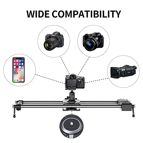Ultra stil en anti-shake: de elektrische slider beschikt over een unieke stille stappenmotor aandrijftechnologie, die het schieten stil maakt en het geluid direct kan opnemen. De dikke koolstofvezel rail en het draaimoment zorgen voor stabiele video’s en soepele opnames