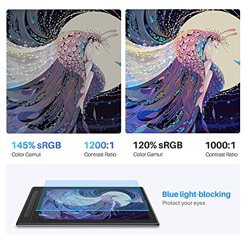 Exquisite Design – De grootte van de grafische tablet met scherm is 15,8 inch, en er zijn 8 sneltoetsen om u te helpen het werkproces te vereenvoudigen; Het slankste deel van deze grafische tablet met scherm is slechts 10 mm, met een gewicht van 1,28 kg, dat is handig om het te dragen op elk gewenst moment.