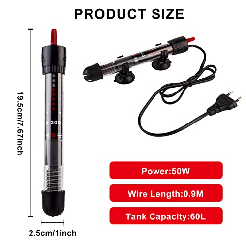 Specification: Delamiya Aquariumverwarming, 50 W, verwarmingsstaaf voor aquarium met zuignappen, thermostaat, verwarming voor…