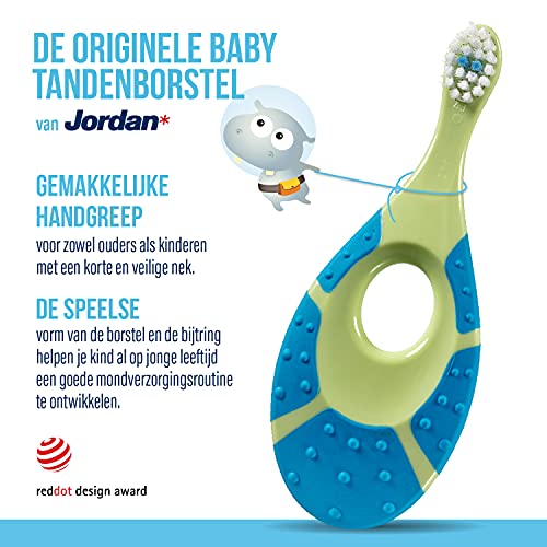 Jordan* is het originele merk van deze babytandenborstel 0-2 jaar, ontworpen met extra zachte borstelharen, een zachte bijtring voor het tandvlees van baby’s en een handvat dat geschikt is voor volwassenen en baby’s. Niet gemaakt in China.