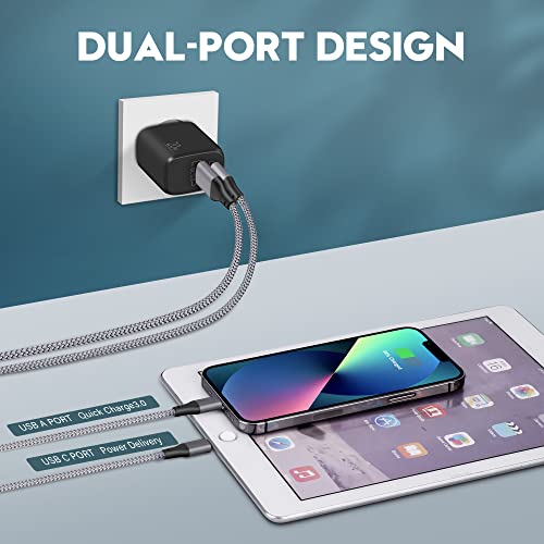 HOGE EFFICIENCY VOEDING: De USB-C-oplader maakt gebruik van snellaadtechnologie, biedt 20 W Power Delivery-uitvoer en 18 W Quick Charge 3.0-uitvoer. De laadsnelheid is 3 keer sneller dan een traditionele 5W oplader. U kunt iPhone 13 (of iPhone 8 en andere latere modellen) in 30 minuten van 0% tot 50% opladen en tot 1,5 uur wachten op een volledige lading besparen.