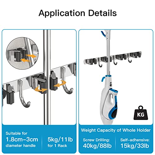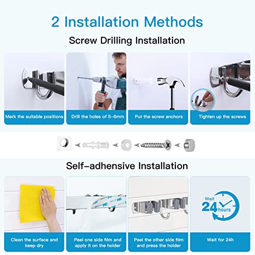 【Eenvoudig te Installeren】Er zijn 2 mogelijkheden om deze bezemhouder te installeren, wij raden aan om schroeven te installeren voor zware ophangingen of buiten. Als je een zelfklevende installatie voor gladde oppervlakken kiest, let er dan op dat de maximale ophanggewicht 13,6 kg. Wij bieden een robuuste gereedschapsorganizer en levenslange klantenservice.