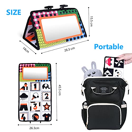 ✨【OPVOUWBAAR EN LANYARD ONTWERP】Dit spiegelspeelgoed kan worden opgevouwen voor eenvoudige opslag. Het dubbelzijdige klittenband, geschikt voor baby’s om op hun buik te spelen of te zitten. Het ontwerp van de stoffen riem kan overal worden opgehangen, zoals muren, wiegjes, kinderwagens, auto’s, stoelen, enz